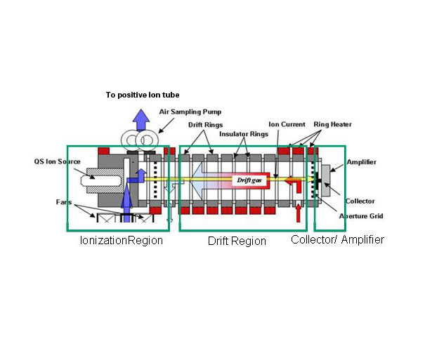 At the QS-B220 a trace sample is collected onto a trap material which is inserted into the system. The sample trap is heated to release Vapor from any explosive and narcotic traces that were collected. The Vapor is drawn into two cascaded ion sources (1x negative, 1 positive) ionized, and exhausted from the system. Explosives and narcotics detection and identification is based on the measurements of molecular ion mobility within a drift tube. The use of two different tubes allows explosives and drug detection the same time. If careful trated traps can be used several times.